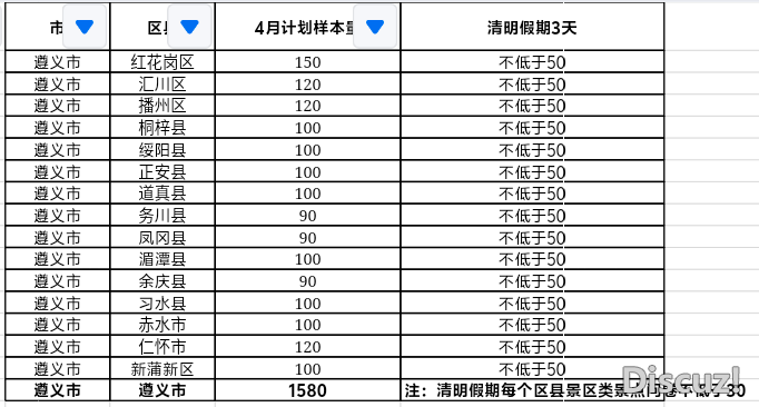 配额要求:清明假期3天,每个区县问卷配额不低于50份 ,且各区县景区景点问卷不低于30份。